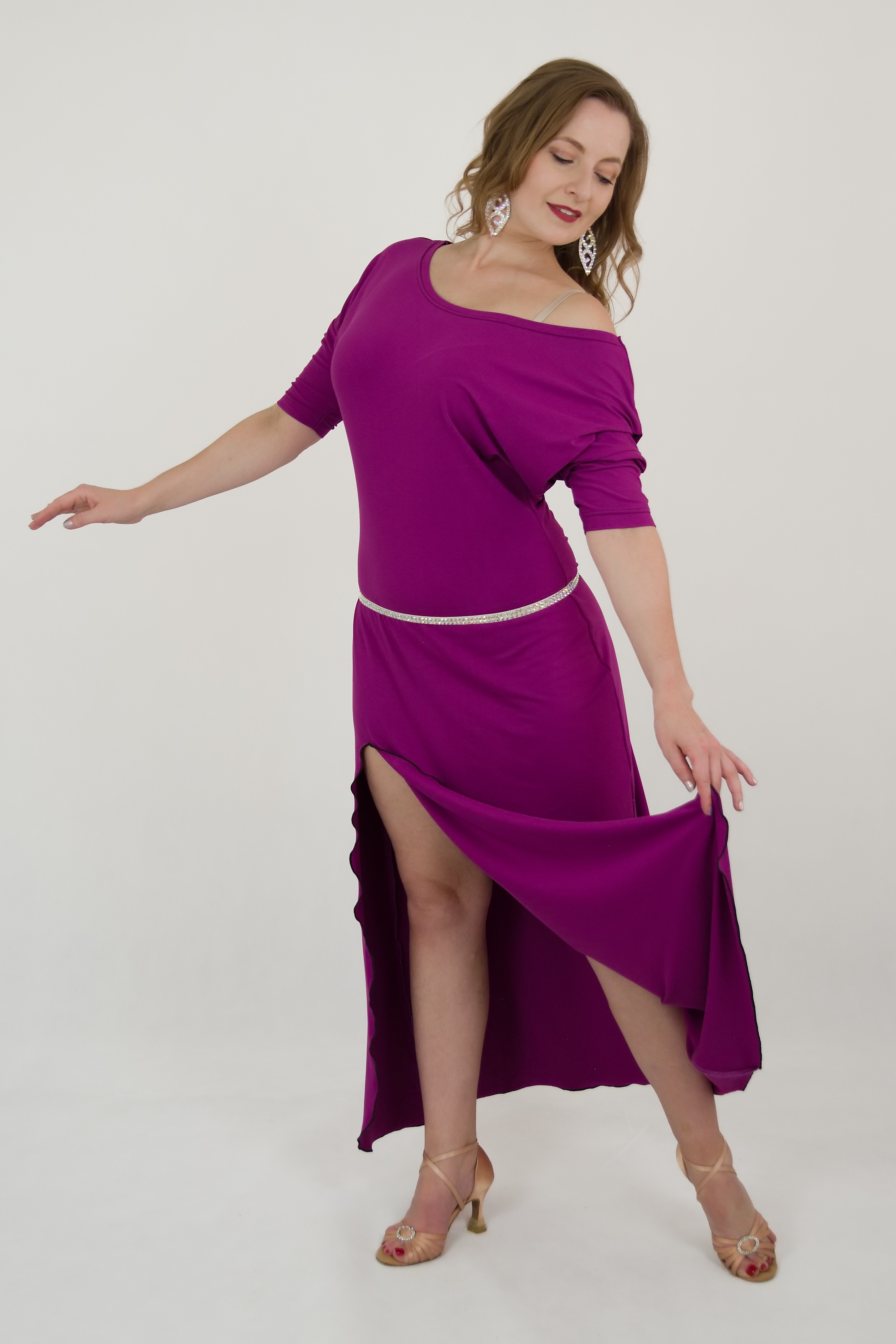 • šaty lze nosit dlouhé, spuštěné, nebo vytažené s cípem za páskem, tím vznikne nová neotřelá varianta šatů třeba na taneční trénink